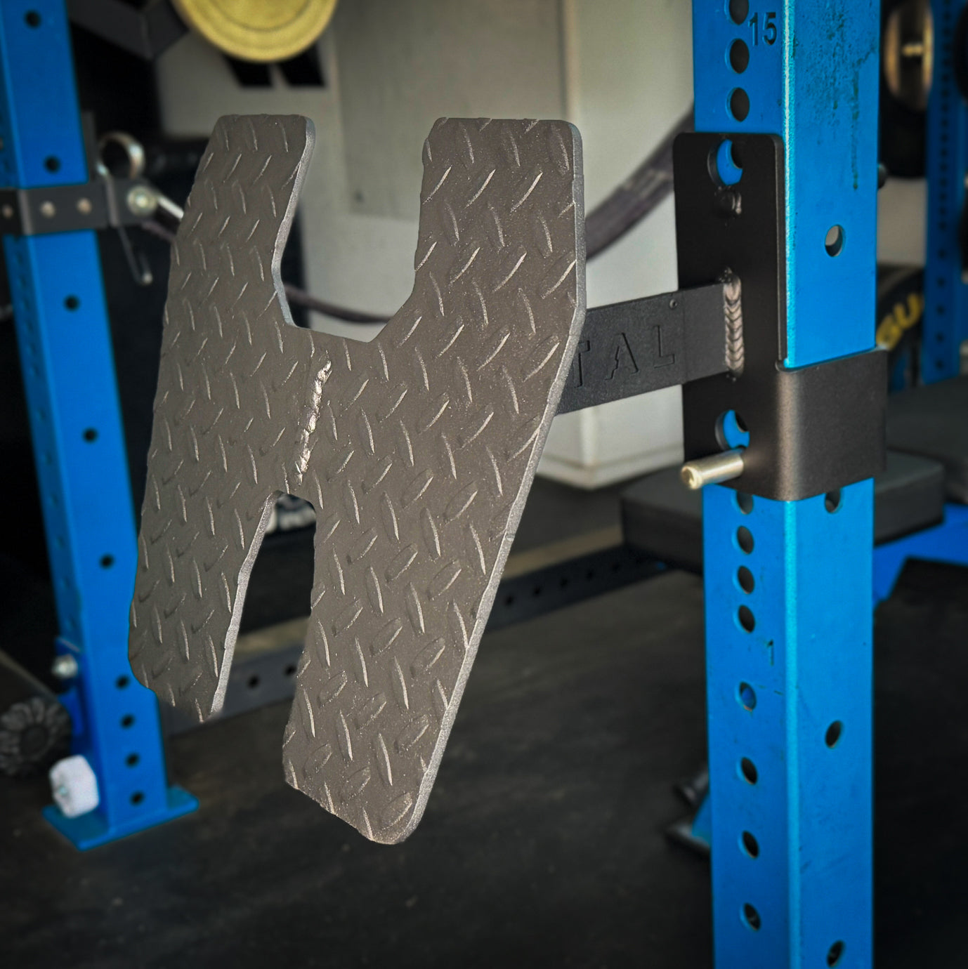 Low Row Footplate designed to work with a variety of power rack cable systems. Note - as of September 1, 2025, all power rack low row footplates are made with 2x2" square tubing (instead of flat bar).